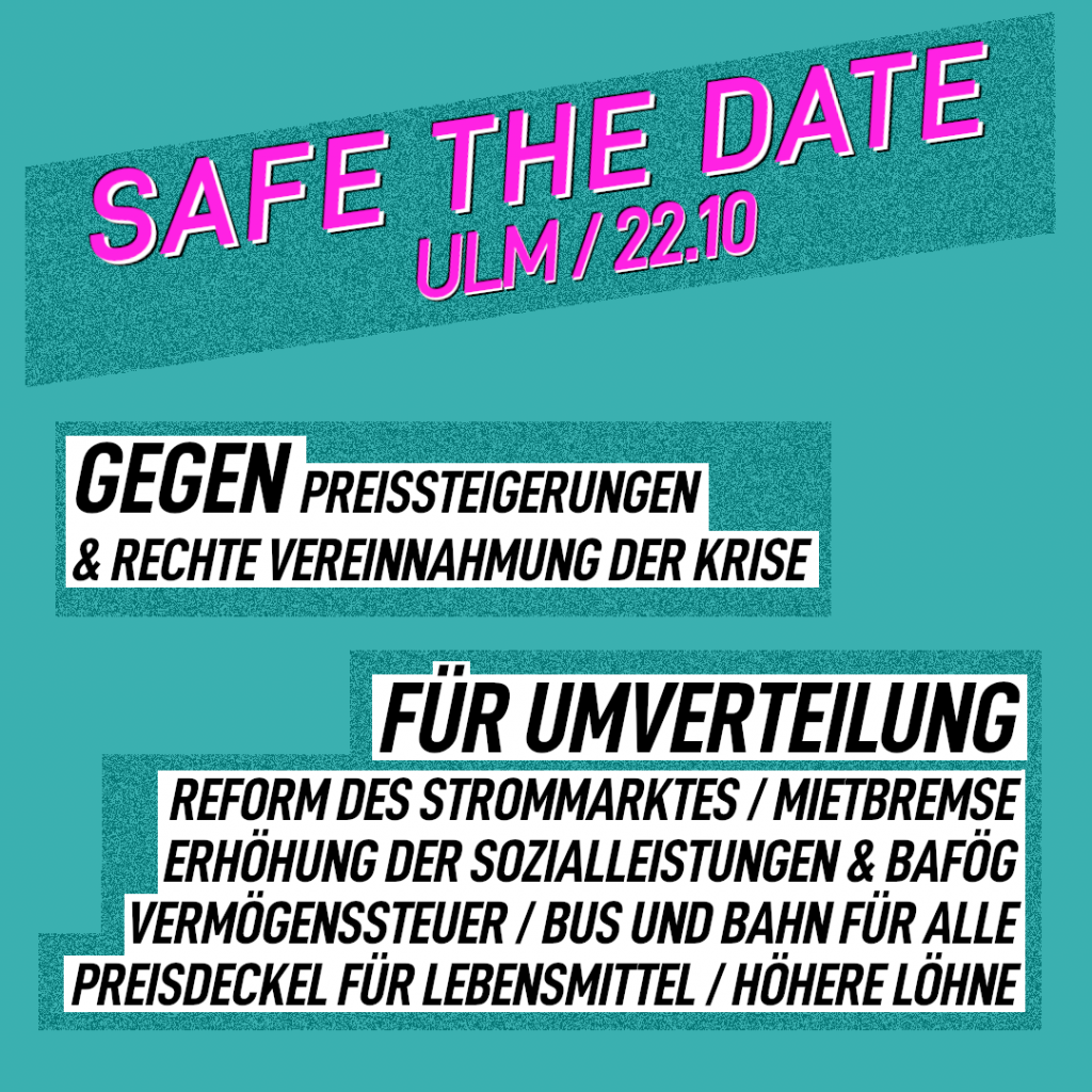 „Mit 50-80 Leuten haben wir heute linke Perspektiven zu den Preissteigerungen auf die Straße getragen und gleichzeitig der rechten Vereinnahmung durch eine Querdenken Kundgebung widersprochen. Klein aber fein ist unser Fazit – laut und mit viel Zustimmung sind wir durch die Ulmer Innenstadt gezogen. In den Redebeiträgen haben wir soziale und öklogische Antworten beleuchtet – Danke an alle die mit auf die Straße gekommen sind. PS: Die Querdenken Veranstaltung hatte 1000 Leute erwartet, tatsächlich waren es keine 100.“
