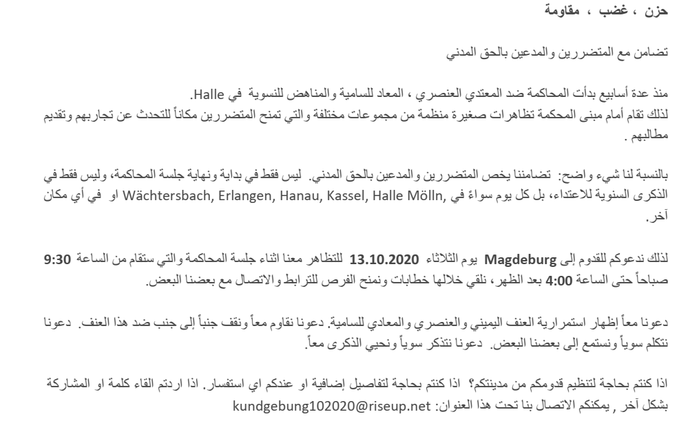 O yüzden 13 ekim 2020de Magdeburg’da bir gösteriye gelmenize bölge üstü bir çağrı duyuruyoruz!
