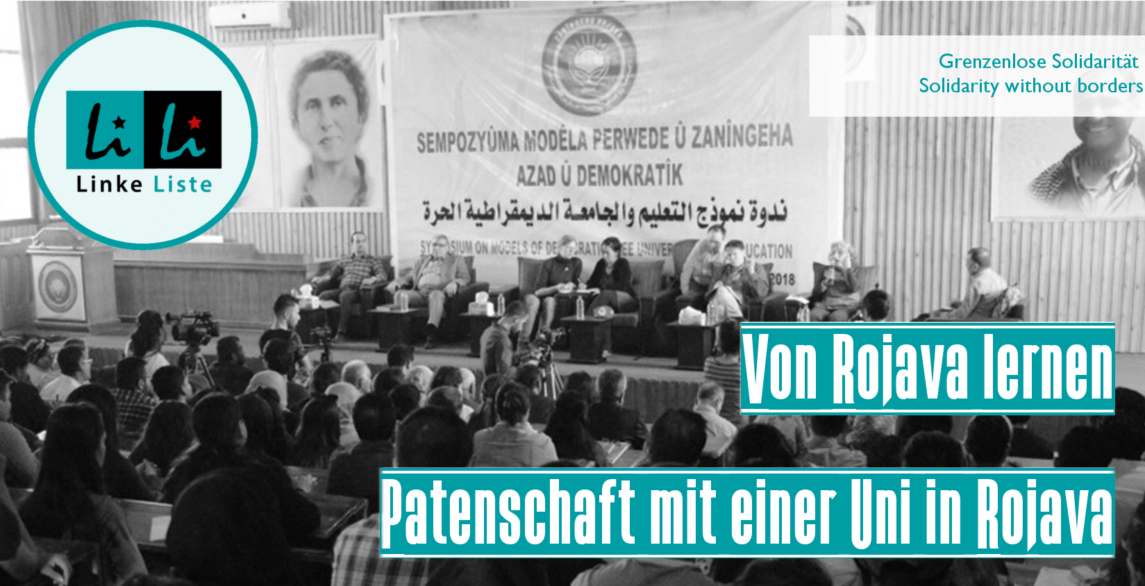 Wir stehen für einen AStA, der keine nationale Agenda fährt, sondern der sich mit den Studierenden und ebenso den fortschrittlichen Kräften auf der ganzen Welt verbunden sieht. In diesem Sinne und insbesondere angesichts der Erdogan-freundlichen deutschen Innenpolitik fordern wir eine Partner*innenschaft mit einer Uni in Rojava, der vom Westen unterstützten Demokratischen Föderation Nordsyrien.