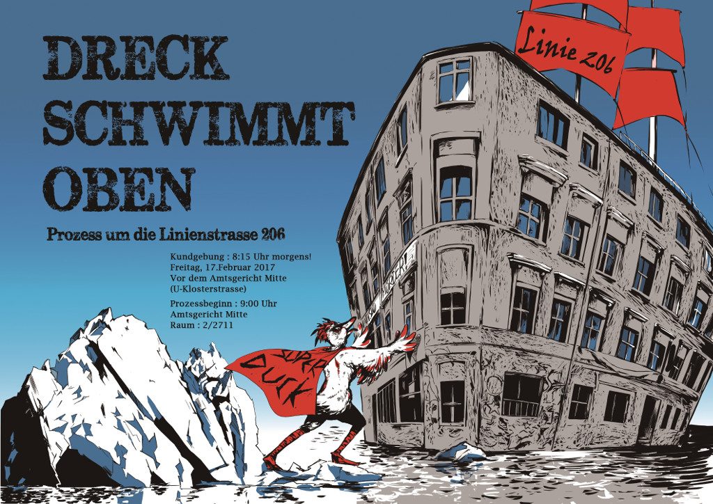 Am 17.02. findet der erste Gerichtsprozess gegen die illegale Räumung [Pressemitteilung] in der Linie 206 im Mai letzten Jahres statt.