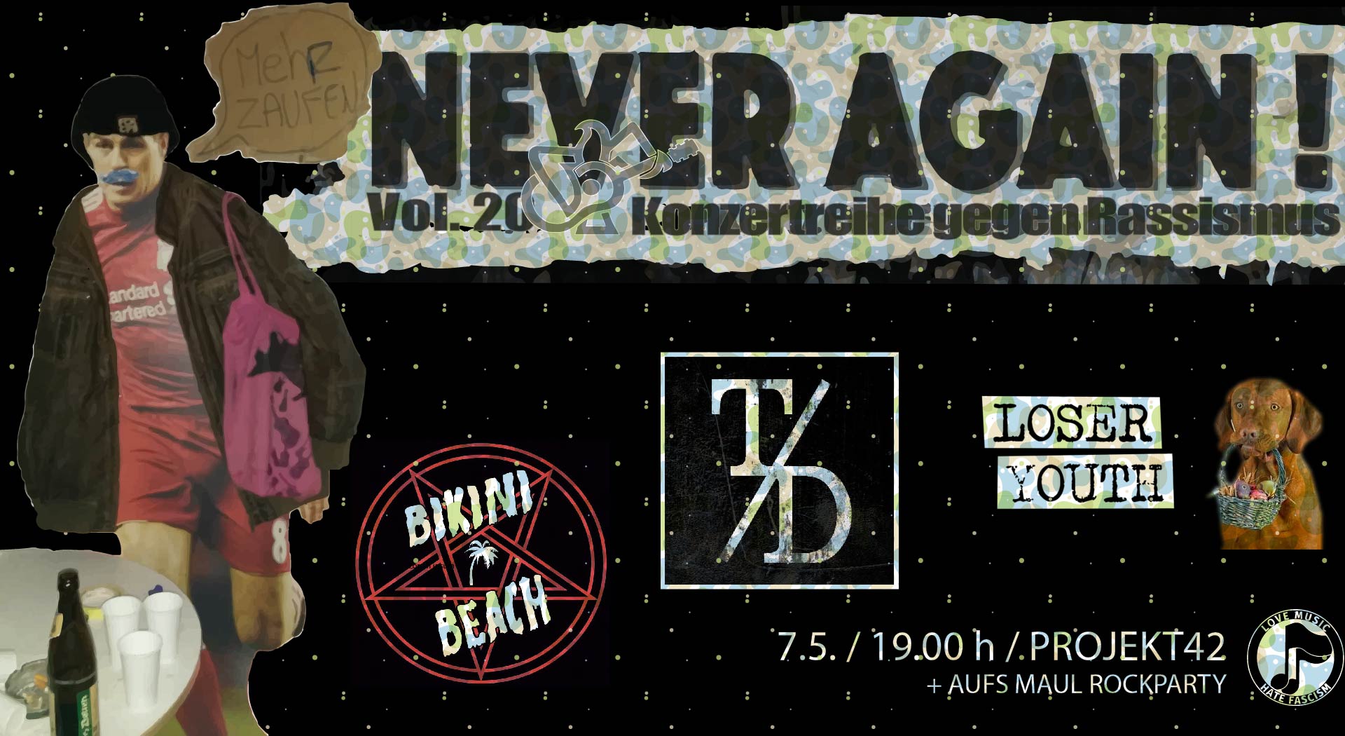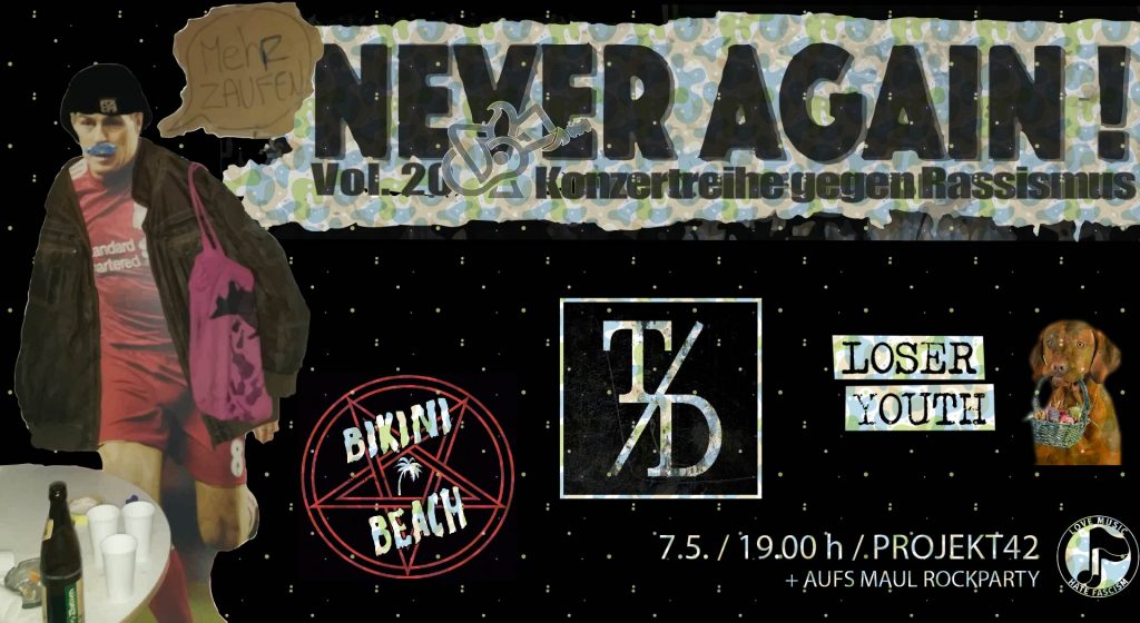 Gladbach, wir sehen uns! 07.05.2022 – Never Again ! Vol. 20 – Konzertreihe gegen Rassismus w/ Loser Youth, Bikini Beach & Torpedo Dreigang