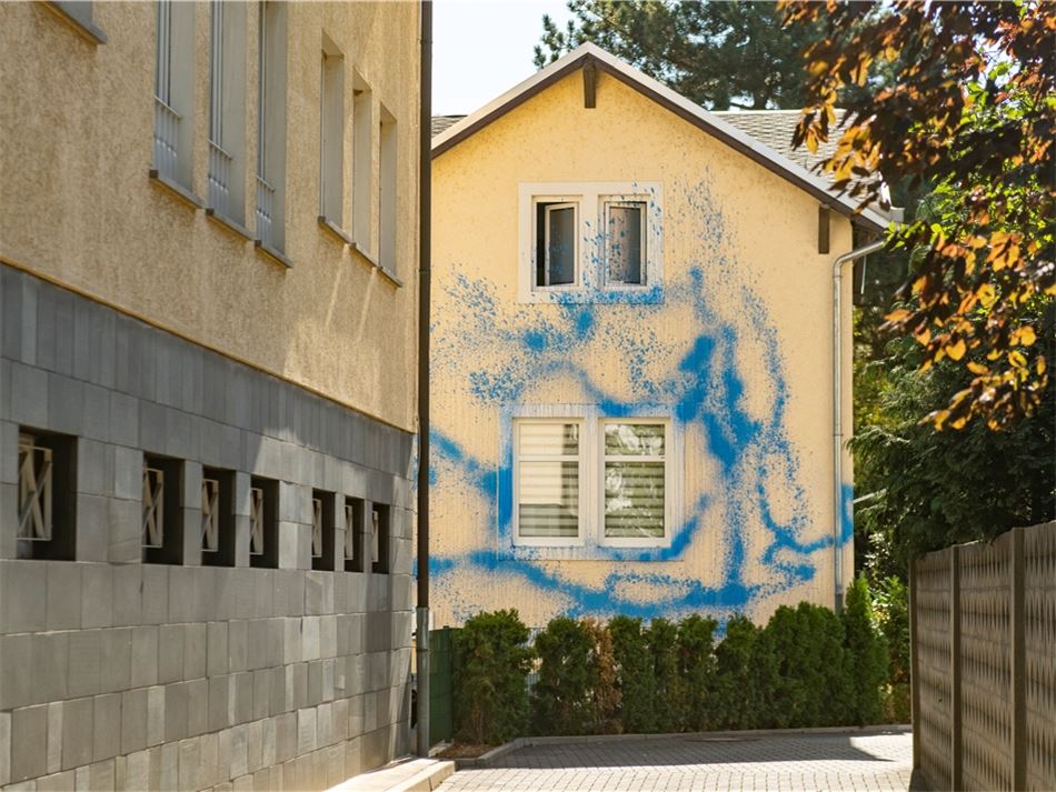 Betroffen ist eine Fläche von etwa fünf Meter mal zehn Meter, zudem wurden zwei abgestellte Fahrzeuge bekleckst. Während sich die Farbe von den Autos entfernen ließ, entstand an der Fassade Polizeischätzungen zufolge Sachschaden in Höhe von rund 5 000 Euro.