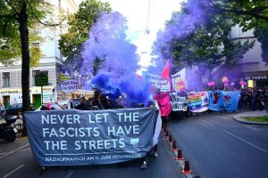 Antifaschismus sei „kein Grundkonsens, er nimmt daher in der Gesellschaft eine marginalisierte Position ein und wird durch die Gesellschaft de-legitimiert“, so Lukas*. Antifaschist_innen werden in diesem Klima als „Störfaktor“ oder „Nestbeschmutzer“ betrachtet. In dieser Wahrnehmung brechen Menschen, die den Nationalsozialismus und Rechtsextremismus thematisieren, den „Konsens des gemeinsamen Schweigens“, so die Rosa Antifa. Benjamin* hebt hervor, dass in Österreich „nichts heiliger als der soziale Friede“ sei. Soziale Widersprüche werden demnach auf autoritäre Weise von oben, von Staat, Parteien und Sozialpartnerschaft befriedet, während sich die Widersprüche von unten in Form von rassistischen und anderen Ressentiments Luft verschaffen. Jeder noch so verhaltene Versuch, die sozialen Widersprüche auf die Strasse zu tragen, wird von den Institutionen mit harter Hand bestraft und es fehlt hier eine offene Konfliktkultur wie sie in anderen Ländern üblich ist. Die Gefährdung für den sozialen Frieden wird von den Mainstream Medien in schlechter Tradition auf ein „Außen“ projeziert und es werden Ängste vor „deutschen Demotourist_innen“ und „ausländischen Horden“ geschürt. Die Wahrnehmung der Polizeipressestelle und die mediale Berichterstattung gehen dabei meistens Hand in Hand. Für Natascha Strobl stehen besonders die Medien in der Pflicht, zu reflektieren, in wessen Dienst man sich stellt, wenn ein bestimmtes Narrativ bedient wird. Strobl wünscht sich daher von Medienarbeiter_innen mehr Mut, nicht mit dem Strom mitzuschwimmen, der immer nur nach der spektakulären Story jagt. Auch Niki Kunrath findet die Praxis vieler Medien problematisch und verdeutlicht dies an einem Beispiel: Als am 4.Juni vor der Universität Wien gegen den Aufmarsch der Burschenschaften demonstriert wurde, stürzten sich die anwesenden Medien sensationshaschend auf ein einzelnes geworfenes Ei.
