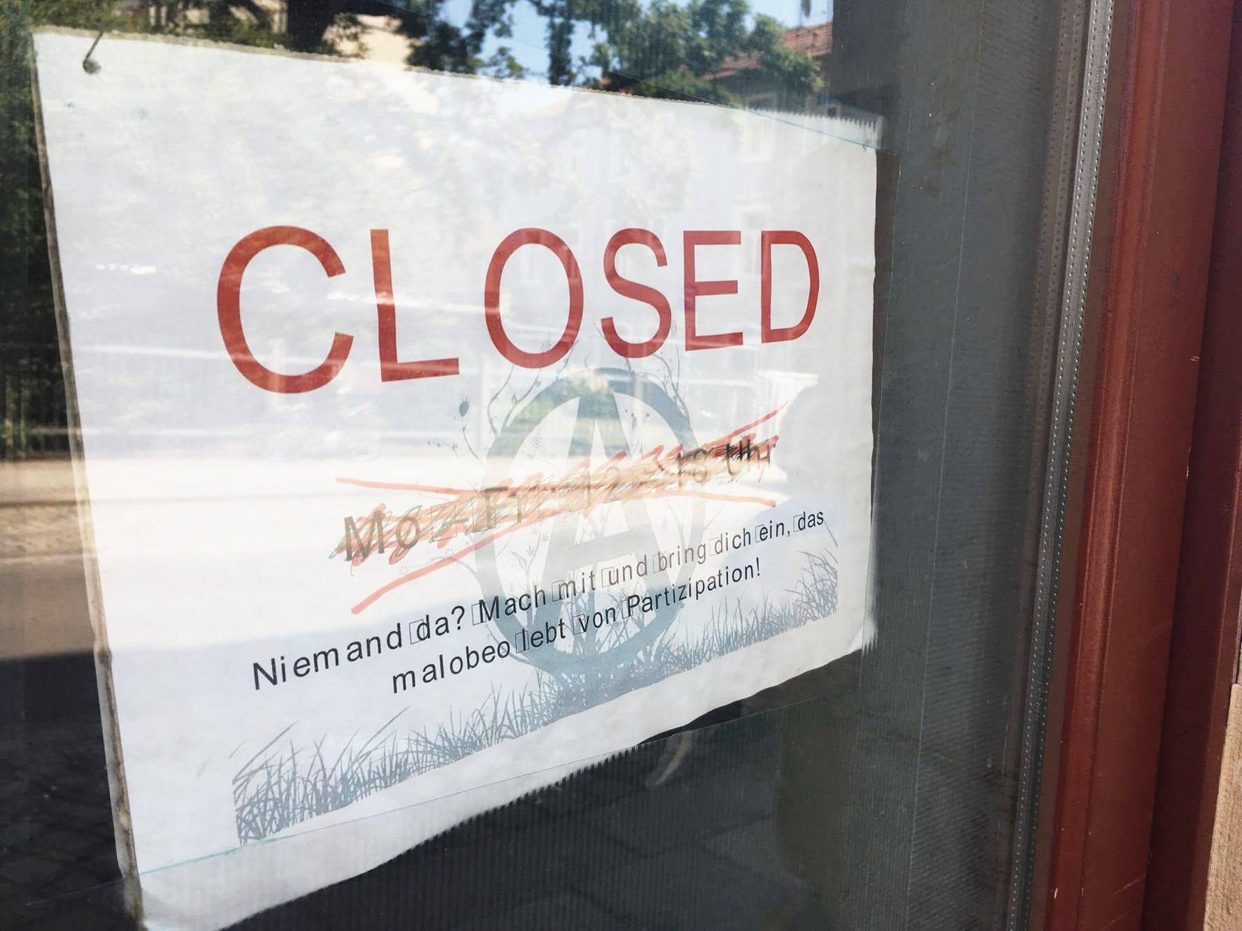 Nachdem das malobeo nun seit über mehr als einer Woche geschlossen ist, ist es Zeit, neue Ideen zu entwickeln. Lasst uns gemeinsam Perspektiven entwickeln, uns neu organisieren und einen politischen offenen Raum neu erschaffen. Wir wollen gemeinsam über basisdemokratische, dezentrale und offene Selbstorganisierung nachdenken und den Laden reorganisieren....