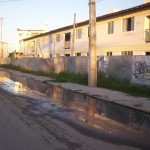 As imagens abaixo expõem o esgoto a céu aberto proveniente do conjunto habitacional contemplado pelo projeto II Perimetral/Via Metropolitana Norte e entregue há um ano pela Prefeitura de Olinda e pelo Governo do Estado. O extravasamento percorre toda a extensão da Rua Ceará, onde está localizada as primeiras 154 residências, e atinge a Rua Humberto de Lima Mendes, via principal de Jardim Fragoso.