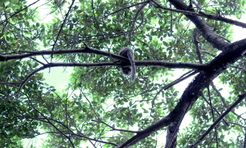 Registro de saguis perambulando pelos galhos das árvores ainda existentes.