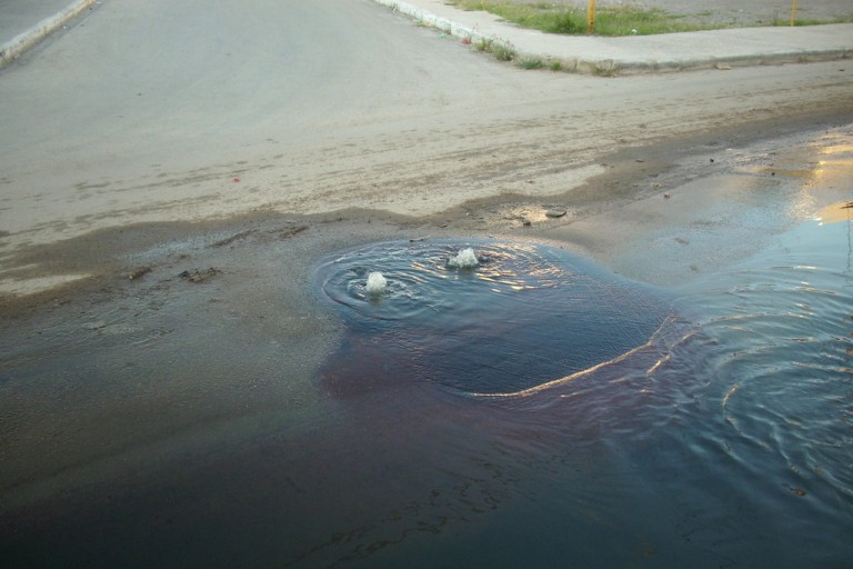 img0009 5. abril 2015 768 × 512 Esgoto a céu aberto em conjunto habitacional do projeto II Perimetral/Via Metropolitana Norte Extravasamento de esgoto na rua Ceará
