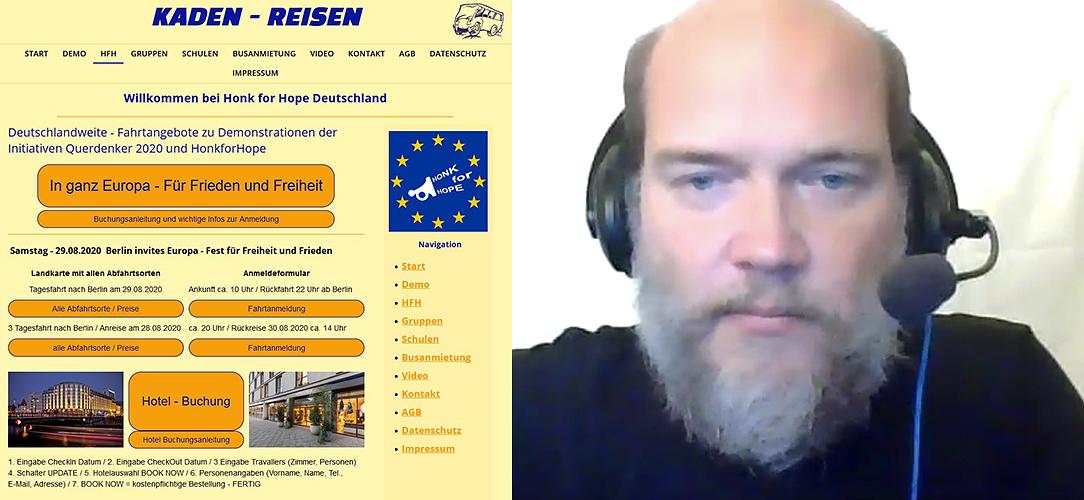 Attila Hildmann ist Autor mehrerer veganer Kochbücher und betreibt einen Imbiss in Berlin-Charlottenburg. Er wurde erstmals im April 2020 mit verschwörungsideologischen Inhalten auffällig. Die Kanäle, über die er seine Inhalte verbreitet, sind hauptsächlich der Chat-Messenger Telegram und das Videoportal Youtube. Am 6. Mai 2020 rief er zu einer unangemeldeten Demonstration gegen die Corona-Beschränkungen vor dem Bundestag auf, an der sich ca. 400 Menschen beteiligten. Während der Versammlung wurde ein Kamera-Team angegriffen.