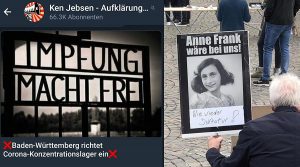 Ken Jebsen, Gründer des Youtube-Kanals „KenFM“, macht aus den Sicherheitsmaßnahmen der Regierung ein „Gehorsamsexperiment“ und sieht in den Notfallmaßnahmen Ähnlichkeiten zur Machtergreifung: „Wie hat das damals angefangen, als die Nachbarn plötzlich weniger wurden?“ fragt Jebsen und gibt sich selbst die Antwort: „Es hat sich angefühlt wie jetzt.“ Allerdings sei in der Nazizeit und in den Bombennächten nie eine „Ausgangssperre“ verhängt worden, raunt Jebsen in die Kamera. „Wenn Erich Honecker es gewollt hätte, dass die Mauer länger stehen bleibt, dann hätte er das mit der Corona haben müssen“, sagt er weiter. Der Videoclip erhielt bisher über 760.000 Klicks. Auch diesen Auftritt beginnt Jebsen mit der typischen Widerstandserzählung, die die Echokammer der alternativen Medien so stark macht. „Es ist jetzt in Deutschland wahnsinnig gefährlich etwas zu sagen, was von der Mainstream-Meinung abweicht. Es war schon vorher gefährlich“. Jebsen sieht sich selber zwar nicht als AfD-nah, seine Angriffe gegen die Medien öffneten aber bisher den für die AfD wichtigen Echoraum. Speziell zu Beginn der sogenannten Hygiene-Demos und in den Anfängen der KDW um Anselm Lenz spielte Ken Jebsen eine wichtige Rolle für die Bewegung.