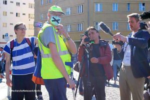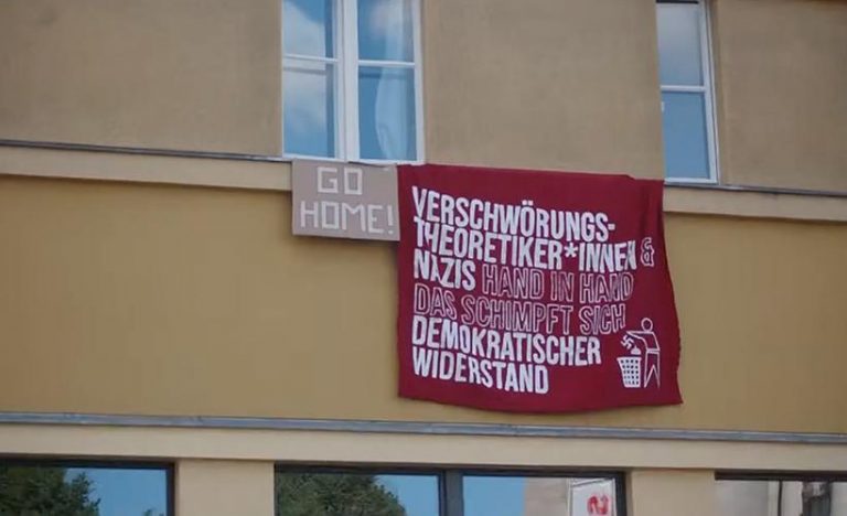 Den dritten Punkt hatten wir in diesem Absatz bereits erwähnt, und er zählt ohne Frage zu dem, was im Kontext der rechten Corona-Mobilisierung 2020 am schnellsten und gerade in den ersten Monaten noch am besten funktioniert hat: Konsequente antifaschistische Recherchen. Es ist von immenser Bedeutung, gerade naturgemäß heterogene Mobilisierungen wie die schon erwähnten Friedensmahnwachen oder in diesem Fall die Anfänge der sogenannten „Hygiene-Demonstrationen“ unablässig und akribisch zu beobachten um frühzeitig erkennen zu können, welche Netzwerke und Akteure sich hinter den scheinbar „spontanen Bürgerprotesten“ verbergen. An dieser Stelle sei den Genoss*innen, die diese zeitaufwändige und nicht ungefährliche Arbeit leisten, ein großer Dank ausgesprochen.