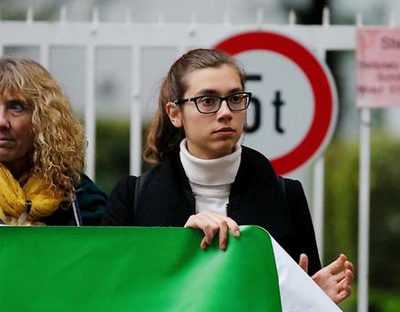 Joana Wolf auf einer Kundgebung von Attila Hildmann, Foto: Paul Hanewacker