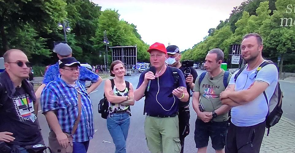 Joana Wolf war wahrscheinlich das jüngste Mitglied im Berliner Querdenken-Camp. Die junge Berlinerin macht eine Ausbildung zur chemisch-biologisch-technischen Assistentin am Berliner Letteverein und trat vor ihrem Aufenthalt im Camp auch schon im Lustgarten auf Hildmann-Kundgebungen auf. Auch der Holocaustleugner Reza Begi und der Neonazi Eric Graziani waren regelmäßig im Querdenken-Camp. Reza Begi zog auch nach der Räumung des Camps am 14. August mit der Gruppe durch Berlin Mitte. Die „Kommunikationsstelle Demokratischer Widerstand“ belieferte das Protestcamp mit ihrer Zeitung und die damalige Pressesprecherin der KDW Anne Höhne war regelmäßig vor Ort. Anne Höhne berichtete zusammen mit Martin Lejeune später von der Räumung durch die Polizei. Lejeune, Höhne und andere Aktivisten saßen nach der Räumung mit dem Antisemiten Reza Begi in einem Cafe am Hauptbahnhof. Nach der Räumung des Querdenken-Camps wechselten viele Teilnehmerinnen in das Reichsbürger-Camp von staatenlos.info direkt vor dem Reichstag. Diese Dauerkundgebung bildete später einen wichtigen Ausgangspunkt für den sogenannten „Sturm auf den Reichstag“. Dirk Scheller versuchte im Spätsommer nochmals ein Querdenken-Camp in der Nähe des Kanzlerinnenamts zu etablieren. „Querdenken30 – Zentrale Außenstelle Berlin“ nutzte hierbei immer wieder Infrastruktur der Berliner Corona-Rebellen und der Neonazi-Gruppe „Patriotic Opposition Europe“ (POE). Aufgrund mangelnder Beteiligung und nach internen Streits, brach Scheller diesen neuen Versuch eines Camps jedoch am 14. Oktober ab. Neben POE und den Corona-Rebellen ist die Berliner Querdenken-Gruppe auch vernetzt mit den „Christen im Widerstand“ um Kirsten Herbold und den sogenannten „Friedensfahrzeugen“ um Silke und Christian Voglmann, sowie dem „Netzwerk Impfentscheid“ um Andrea Feuer. Kirsten Herbold meldete unter anderem die Querdenken Kundgebung am 25.10. auf dem Alexanderplatz an. Die Kundgebung vor dem KOSMOS am gleichen Tag wurde von Christian Stockmann angemeldet. Im Umfeld der Gruppe tummeln sich auch einige rechte Berliner Youtuber*innen wie der Kanal „Berlin Berlin TV“, der Kanal „Videocesar“, der von Steve Maninkin betrieben wird, oder Stefan Michels alias „Stefan Raven“. Seit Mitte des Jahres taucht auch regelmäßig der ehemalige Hanf-Aktivist Oliver Becker alias „James Blond“ bei Aktionen der „Freedom Parade“ und bei Kundgebungen aus dem Reichsbürger-Spektrum auf.