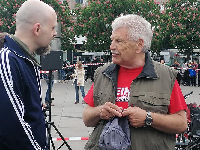 Udo Voigt auf „Hygienedemo“ am 16.05.2020 mit T-Shirt gegen „Impfzwang“