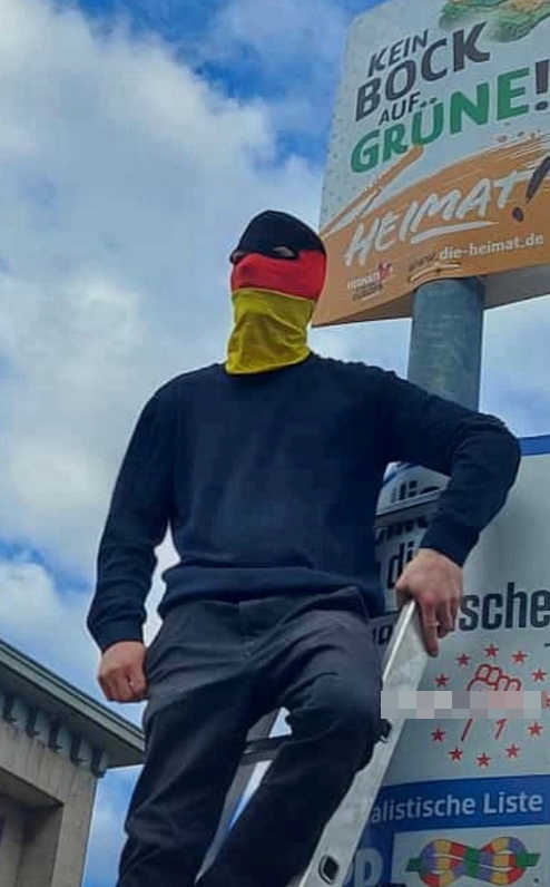 Julian Milz beim Aufhängen von Plakaten von „Die Heimat“ (früher NPD)