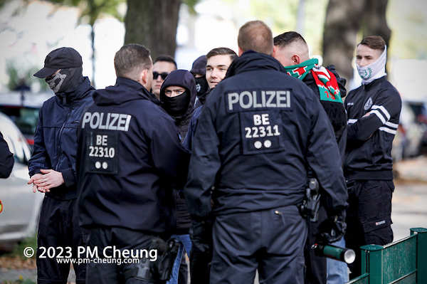 Enrico Rehling (mittig mit schwarzem Tuch) und Luca Böttcher (rechts mit weißem Tuch) am 14.10.2023 in Pankow, Foto: PM Cheung