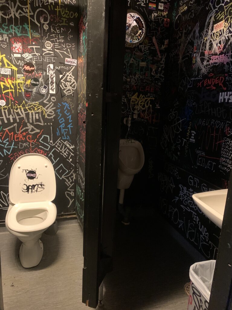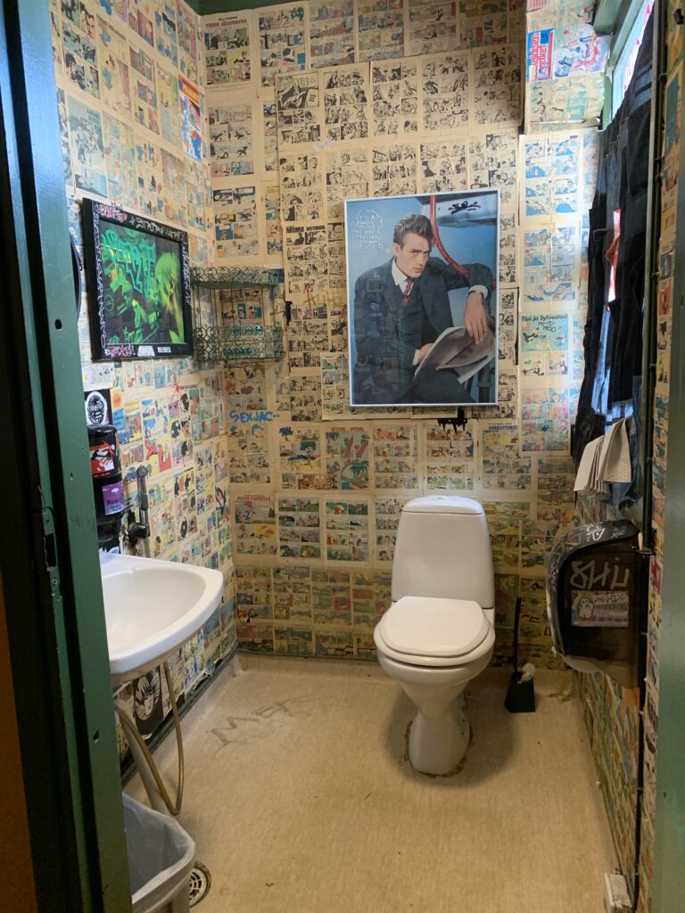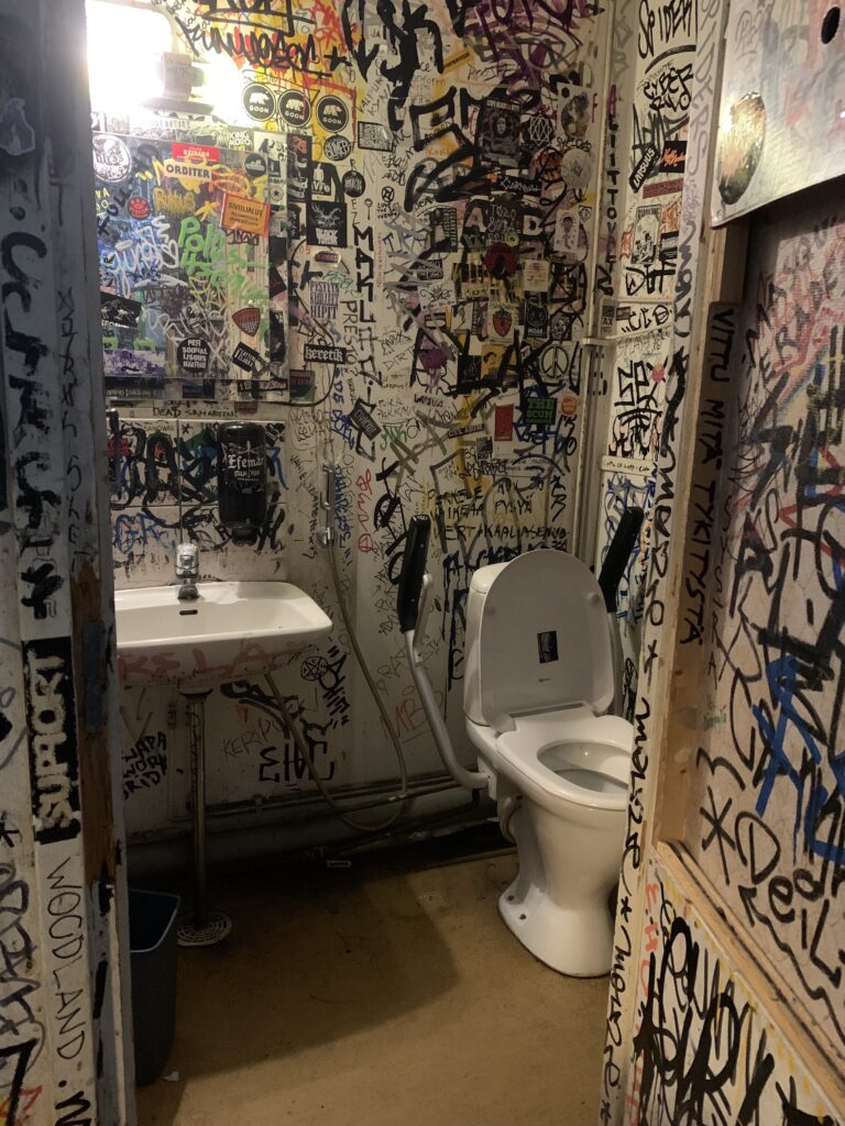 During Musta Pispala 2023 there is an accessible toilet at Hirvitalo (rented portable toilet). The accessible toilet is located near the Tahmelankatu entrace, et the end of the Hirvitalo yard. The path leading to the toilet from the yard is about 7 meters long and waries in width (1 meter or less). The door of the accesible toilet opens to the outside. There is space to enter with a wheelchair and one carer.