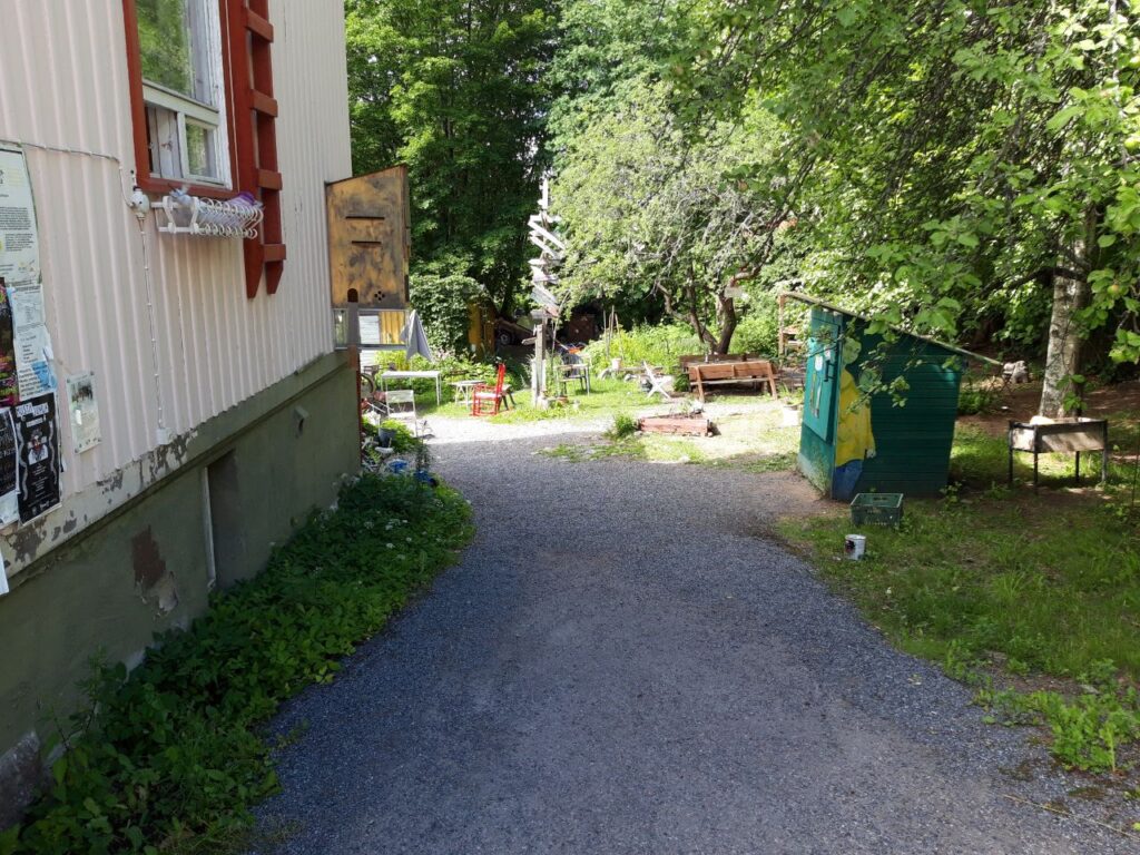 Pihalle johtaa 10 metriä pitkä, 250cm leveä asfaltoitu tie, jonka päällä on irtosoraa. Reitin kaltevuus on jyrkimmässä kohdassa 13°. Tien päässä ja pihalavan edustalla on joitakin mukulakiviä.