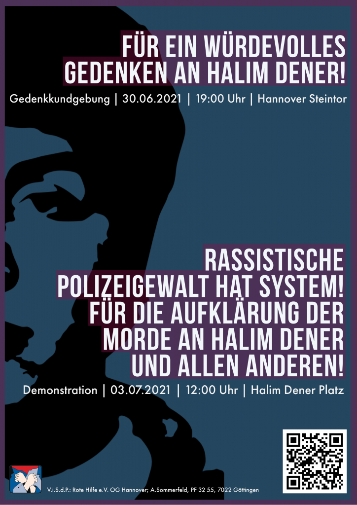 Am 30.06.1994 – vor 27 Jahren – ist Halim Dener im Alter von gerade einmal 16 Jahren hier in Hannover von einem SEK Polizisten in Zivil erschossen worden. Der Tod von Halim Dener hat viele Facetten: Er steht nicht nur exemplarisch für die ständige Kriminalisierung der Solidarität mit dem kurdischen Befreiungskampf. Er zeigt auch, wie eine sich gegenseitig deckende Polizei und Justiz unbeschadet aus der Verantwortung ziehen kann, wenn Menschen durch ihre Hand ihr Leben lassen. Halim Deners Tod zeigt beispielhaft, dass von Rassismus betroffene Menschen in der BRD einem besonders hohen Risiko ausgesetzt sind, ihr Leben durch den Staat und seine rassistischen Institutionen zu verlieren.