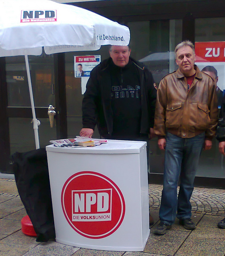 Hier ist ein langjähriges Mitglied und der Kopf des Unterbezirks Oberweser der NPD. Harry Breckel organisiert Infostände in der Innenstadt und steckt vor allem im Umland Hildesheims