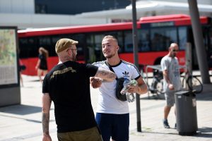 Zur Kundgebung am Hildesheimer Hauptbahnhof, die von Johannes Welge angemeldet wurde, schafften es gerade einmal 23 Nazis. Zu altbekannten Hildesheimer Gesichtern wie Rene Scholtyseck und Michael Weiss gesellten sich Nazis aus Goslar, Einbeck, Dortmund und Braunschweig. Die Dortmunder Nazis um den Bundesvorsitzenden von „Die Rechte“ Michael Brück stellten an diesem Tag die mit Abstand größte Gruppe von Teilnehmenden.