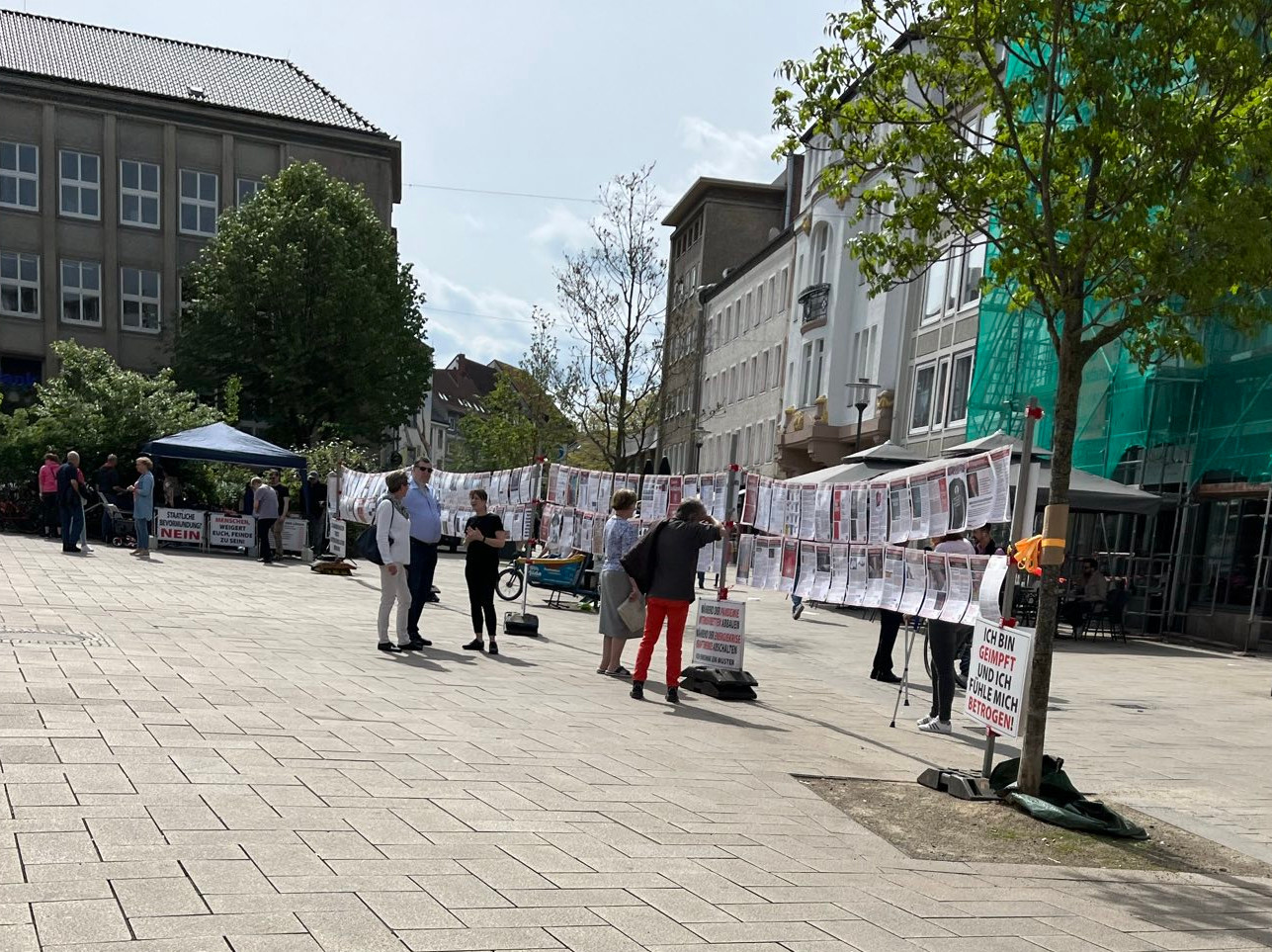 Eine neue Art der Veranstaltung fand zum ersten Mal am 13.04.2024 auf dem Angoulemeplatz statt: Die „Galerie der Aufklärung“. Dabei handelt es sich um eine Art Ausstellung, die es so auch schon in anderen Städten gibt. Aufgehängte Infozettel, Bilder und Schilder sollen so die kruden Verschwörungstheorien der Querdenkenbewegung in der Stadt präsent machen.