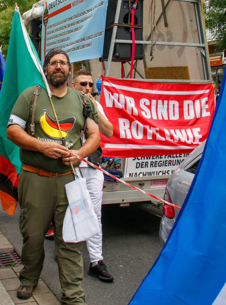 Von den Querdenker*innen gehen immer wieder Bedrohungen aus. Sie drangsalieren regelmäßig linke Personen auf offener Straße. Bei einer Klimademo von Fridays or Future 2023 machten sie Aufnahmen von den Demonstrierenden, anscheinend als Versuch einer Art Anti Antifa. Außerdem versuchten sie im November 2023 eine linke Veranstaltung zu stören und zu provozieren, konnten aber davon abgehalten werden.