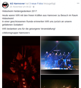 Hier veranstalteten Neonazis aus Niedersachsen am 19.11.2017, dem Volkstrauertag, eine geschichtsrevisionistische Kundgebung. Über diese Aktion ist bisher wenig bekannt und wir würden uns über Zuschriften freuen.
