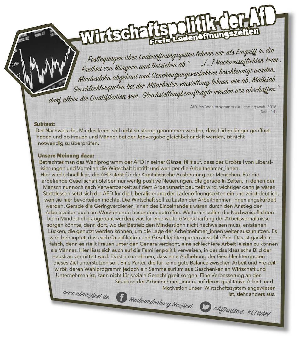 Und an alle Protestwähler_innen: Niemand muss mit der derzeitigen Situation einverstanden sein, aber dann Freunde des Kapitals und Fremdenhasses wählen? Nun ja… seinen Protest kann man auch sinnvoller zum Ausdruck bringen.