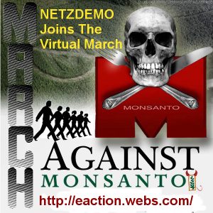 The March Against Monsanto is inspired by the love for freedom and democracy, the love for the Earth, the soil, the seeds. The March Against Monsanto in 2013 started on 25th May. On the same day, „Netzdemo Portal“ called for participation in a Virtual March Against Monsanto on websites and facilities around the world.