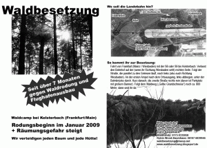 On January 12th, 2009, a Virtual Sit-In of the FRAPORT propaganda web site [http://www.ausbau.fraport.de] took place. This online protest aimed at the expansion of Frankfurt airport (Germany) by the airport operating company Fraport. To build the new runway Nordwest at Frankfurt airport, Fraport will cut down trees in a protected forest reservoir and destroy habitats for birds and other animals. According to plans from Fraport the clearing of the Kelsterbach Forest was set to start on February 4th, 2009.