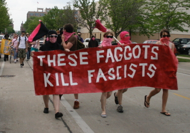 Before we move on though, there’s a bit more to say about this. Something that came up then but had also come up previously in BB! Twin Cities was that the other folks didn’t feel comfortable in the local anarchist scene. They felt too queer for cis, straight anarchists. I actually felt more comfortable in the anarchist scene than I did in the queer scene. [2] I didn’t feel like the right kind of queer for the queer scene and felt pressure to perform queerness in a way that didn’t feel genuine to me. And so much of it seemed to revolve around parties which didn’t appeal to me because I’m boring and introverted. But the reason I bring this up is that anarchists should be thinking about how queer friendly our scenes are or aren’t. For an example, we ended up working with members of the IWW and punks around antifa activities and I specifically had conversations with Wobblies about doing preferred pronouns during meeting introductions but they didn’t want to because they thought it would alienate the proles or whatever, which I actually think is bullshit. And if you make that choice, you are choosing to alienate queer folks who will otherwise be misgendered at your meetings out of fear of potentially alienating others who you are patronizing. And a couple times we went toe to toe with Neo-Nazis there were punks we had to call out for calling the Nazis pussies and faggots. That kind of bullshit limits who wants to continue to engage in antifa activities. That is something people should be intentional about as antifa makes an upswing in the Trump era.