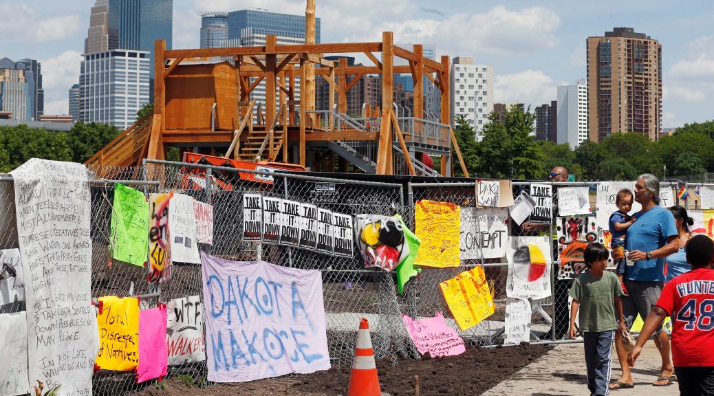 The lake formerly known as Calhoun is officially restored by the city to its original Dakota name, Bde Mka Ska. A sculpture which capitalizes on the pain of indigenous genocide to produce heady conceptual art aimed primarily at non-Natives is destroyed following widespread condemnation, with the offending museum promising to hire Dakota consultants in the future. Based on these incidents alone one could argue, and indeed some have, that colonialism in Minnesota is fading away. Yet at the same time, Hennepin County Sheriff’s Office personnel display remarkable brutality in assisting their North Dakotan counterparts and the National Guard in attacking water protectors at Standing Rock, some of whom are direct descendants of Dakota who were displaced from what became Hennepin County by the predecessors of our modern Sheriff’s Office. Meanwhile, Fort Snelling, once used as a concentration camp for the Dakota prior to their expulsion from Minnesota, is used by ICE as a pre-deportation detention center for immigrants, many of whom are of indigenous Chicanx heritage.