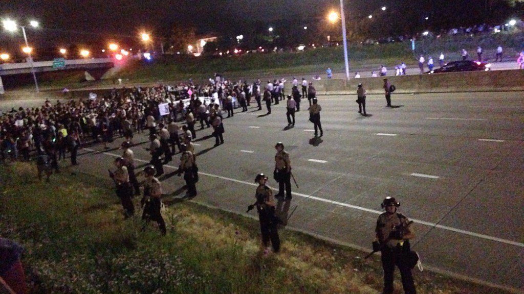 And yet, as in demonstrations time and time again before that night, a somewhat small group of Black Lives Matter organizers led the massive crowd in a winding route around the city of St. Paul and ultimately, via an orchestrated effort, onto Interstate 94. Police, in communication with organizers, quickly re-routed traffic to flow far around the people standing on the highway. During the march, liberal-minded activists and their dutiful ‘white allies’ shouted at and shamed people expressing their anger through graffiti, and in some instance even attempted to turn them in to the authorities.