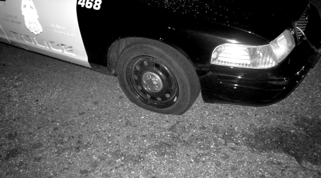 In addition to having your all-black ensemble ready to go, you will generally want to wear something inconspicuous when entering and exiting areas of conflict. Avoid changing in sight of cops, cameras and people you don’t know or trust. A change of clothes is also crucial in case the cops start shooting marker rounds, little pellets that hurt like hell and leave a colored stain wherever they hit. If you are tagged by one of these, ditch the marked clothes as soon as possible, as police use marker rounds in situations where they have lost control, tagging individuals to send snatch squads after once control has been reimposed. In fact, much of the state’s case against the person facing felony charges from the night of the 9th appears to rest on the fact that when they were picked up they were allegedly sporting a tag from a round fired earlier in the night. It might suck to ditch your favorite pair of jeans, but a new pair will be cheaper than a court case.