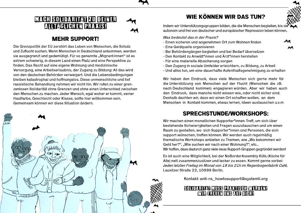 Dieser Flyer gibt praktische Tipps zur Supportgruppenarbeit für people on the move und illegalisierte Menschen.