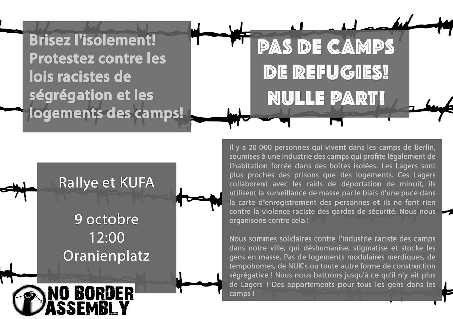 KEINE LAGER! NIRGENDWO! Kundgebung und Küfa am 9.Oktober
