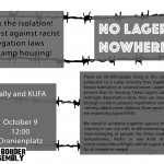 Durchbrecht die Isolation und protestiert gegen rassistische Segregationsgesetze und Lagerunterbringung! KEINE LAGER! NIRGENDWO!