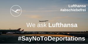 Ab heute, den 27.07, werden wir die sozialen Medien mit Botschaften fluten, die die Aufmerksamkeit auf die Abschiebeprofite der Lufthansa lenken.