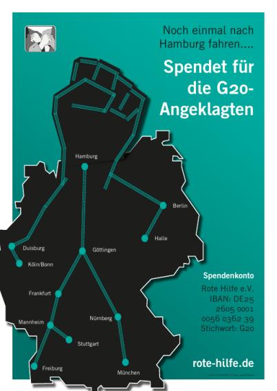 Dieser Prozess und dieses Urteil sind ein eindeutiger Versuch, die Aktionsform Demo zu kriminalisieren und zu verunmöglichen. Die juristische Auseinandersetzung darum ist aber auch jenseits des Elbchaussee-Prozesses noch nicht vorbei. Ihren nächsten Schauplatz wird sie, wie bereits erwähnt, im noch nicht abgeblasenen Rondenbarg-Verfahren finden.3) Dabei liegen Anklageschriften gegen ca. 80 Genoss*innen vor und es wird ebenfalls versucht, Menschen für das Ausüben ihres angeblich rechtsstaatlich gewährten Demonstrationsrechts zu kriminalisieren. Während in den letzten Jahren rechte Polizist*innen für das illegale Anhäufen von Munition und Waffen lediglich Bewährungsstrafen bekommen haben, wird mit riesigem Aufwand gegen Personen ermittelt, die lediglich an einer Demonstration teilgenommen haben. Aber auch diese Repression wird uns nicht abschrecken. Denn unser Aktivismus zeigt immer wieder auf, dass ihre Ordnung nicht so unangreifbar ist, wie einige es gerne hätten!