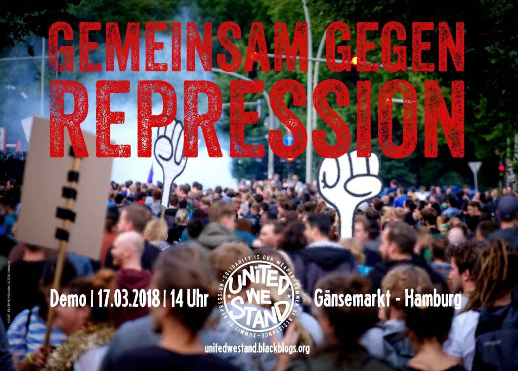 Wir würden uns sehr freuen Euch bei der Veranstaltung und bei der Demo in Hamburg zu sehen! Es wird auf der Veranstaltung auch die Soli-Sampler vom United We Stand – Bündnis geben.