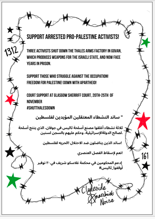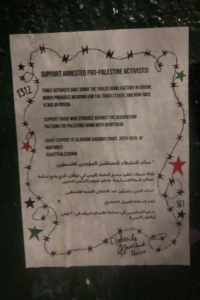 Three activists shut down the Govan Thales factory in 2022 for their role in the production of weapons for the Israeli state, and now face years in prison.