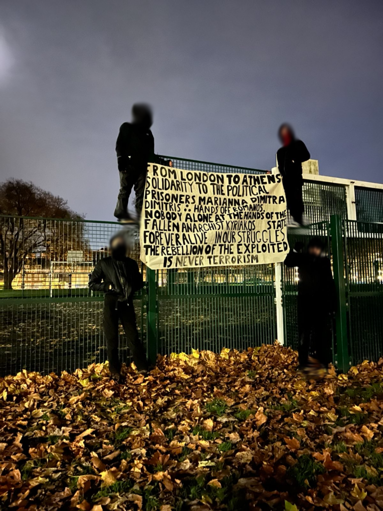 In a reflex response, Anarchist Folk Night in Glasgow dropped a banner in a show of international solidarity. We won’t allow the state to deny our existence!