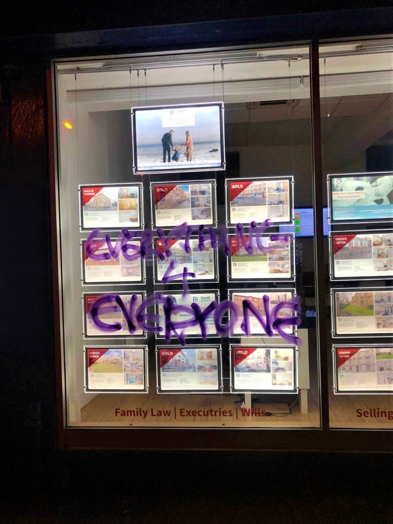 P.S. Clydeside Anarchist Noise is in a period of self-reflection, meaning we have taken a short break from outward-facing action. Meanwhile, we have been supporting local struggles and building networks of solidarity. Stay tuned, and see you soon on the streets…