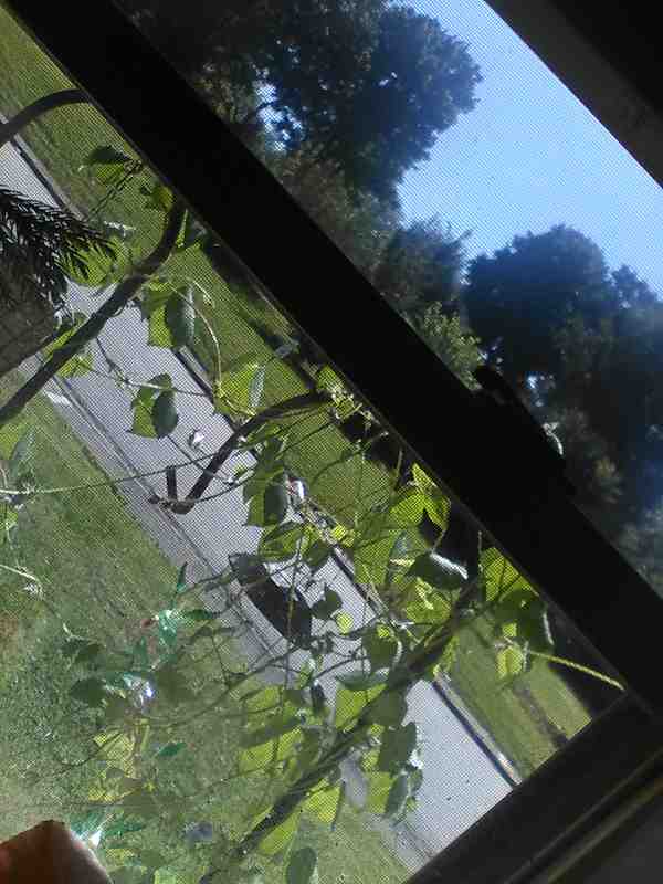 Since my mom’s passing, from nowhere vines have fastly grown to fully overtake the two shepherd hooks outside her living-room windows, the hook holding the bird feeder and hook holding a solar-powered mobile of hummingbirds now connected to one another by the vines, which are also reaching to the windowsill and the window itself, while displaying small purplish-blue flowery trumpets which may be morning glories as they bloom for only an hour or so per day. Quietly momentous and monumental. I think all of this is the natural world trying to hold on to what was shared here by mom, because the love she had for it was absolutely a love returned.