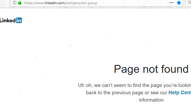 The SCL Group itself is so busy with promoting hatred and fear that it cannot be arsed to use its apparent mastery of weaponizing digital information to clean up a dead-link on its own website, for the lone social media account it holds: