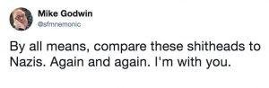 But as long as the social media platforms proffered by these tech companies are publicly accessible and free of charge, then saying their conductors are free to inhibit free speech rights for everybody else is talking semantics, regardless if they do it to stroke their own egos or because Uncle Sam ordered them to under threat of additional tax sheltering or because billionaires paid them to guarantee such twisted things. If they are owned and operated by US citizens and acting on US soil then they should be susceptible to each and every law on the books, including no obstructions of the constitutional rights of citizens or the basic human rights of anybody else, because THAT would be traitorous. Especially when “corporations are people too”. This proves another solid example for the stone-cold fact that Libertarianism is the adolescent form of Feudalism, because deregulation only leads to bullies. If “might makes right” then rapists and murderers are never in the wrong. Which isn’t very democratic at all.