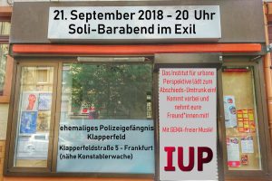 Das Institut für urbane Perspektiven in OF schließt seine Pforten und lädt zum solidarischen Abschiedsumtrunk im FFM Exil ein – Klapperfeldstraße 5