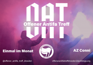 Wir freuen uns euch bekanntgeben zu können, dass der 3. Termin für den Offenen Antifa Treff (OAT) in Dresden festeht. Am Freitag, den 29. Juli ab 17 Uhr im AZ Conni findet der nächste Treff statt!