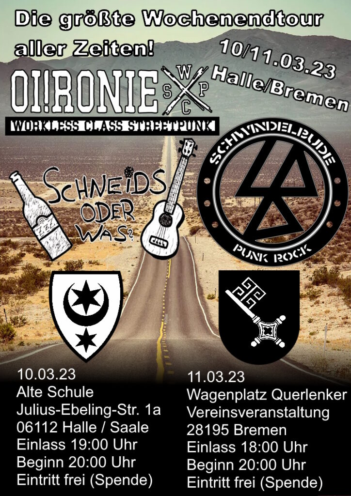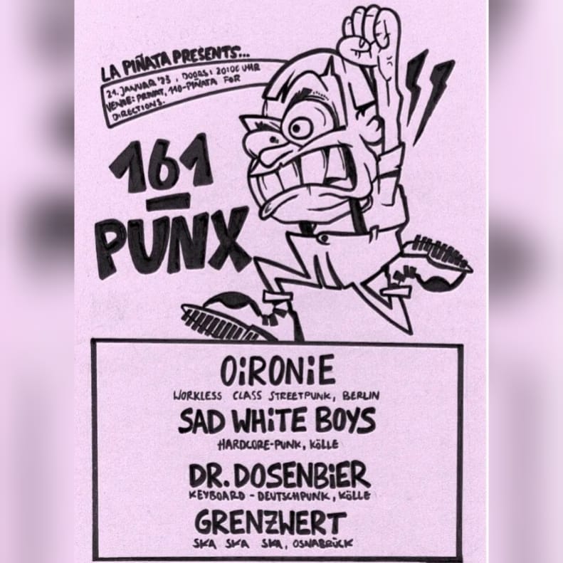 … wunderschön. Vielen Dank an alle die diesen Tag ermöglicht haben. Besonders La Pinata Shows, Sad White Boys, Dr. Dosenbier, Grenzwert und alle die da waren und mit uns abgehangen haben und uns bei sich aufgenommen haben. Es war wirklich einsame Spitze. Lasst uns das bald wiederholen..Oi!