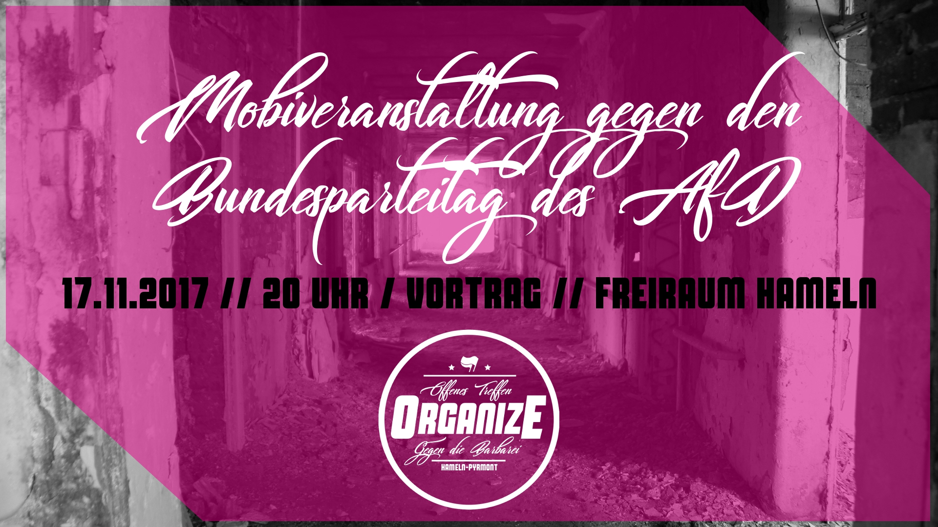 Gut informiert und bestens mit Demo-Material ausgerüstet, regenerieren wir uns nun nochmal, um am 1. und 2. Dezember 2017 zum antifaschistischen Doppelschlag nach Hannover aufzubrechen. Wer sich noch anschließen möchte, kann uns nochmals per E-Mail kontaktieren.